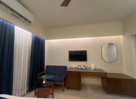This opulent room boasts two separate king-size beds, adorned with exquisite interior design elements. Each bed is luxuriously appointed with fine linen, and the room features a comfortable sofa for lounging, complemented by two elegant plastic chairs. For your convenience, there’s a well-appointed working desk, a state-of-the-art RFID digital lock securing the main door, a digital safety locker, an LED TV for your entertainment, a telephone for easy communication, and a full range of custom-made bathroom amenities. With 24-hour room service and a host of other thoughtful touches, your stay promises unparalleled comfort and indulgence.